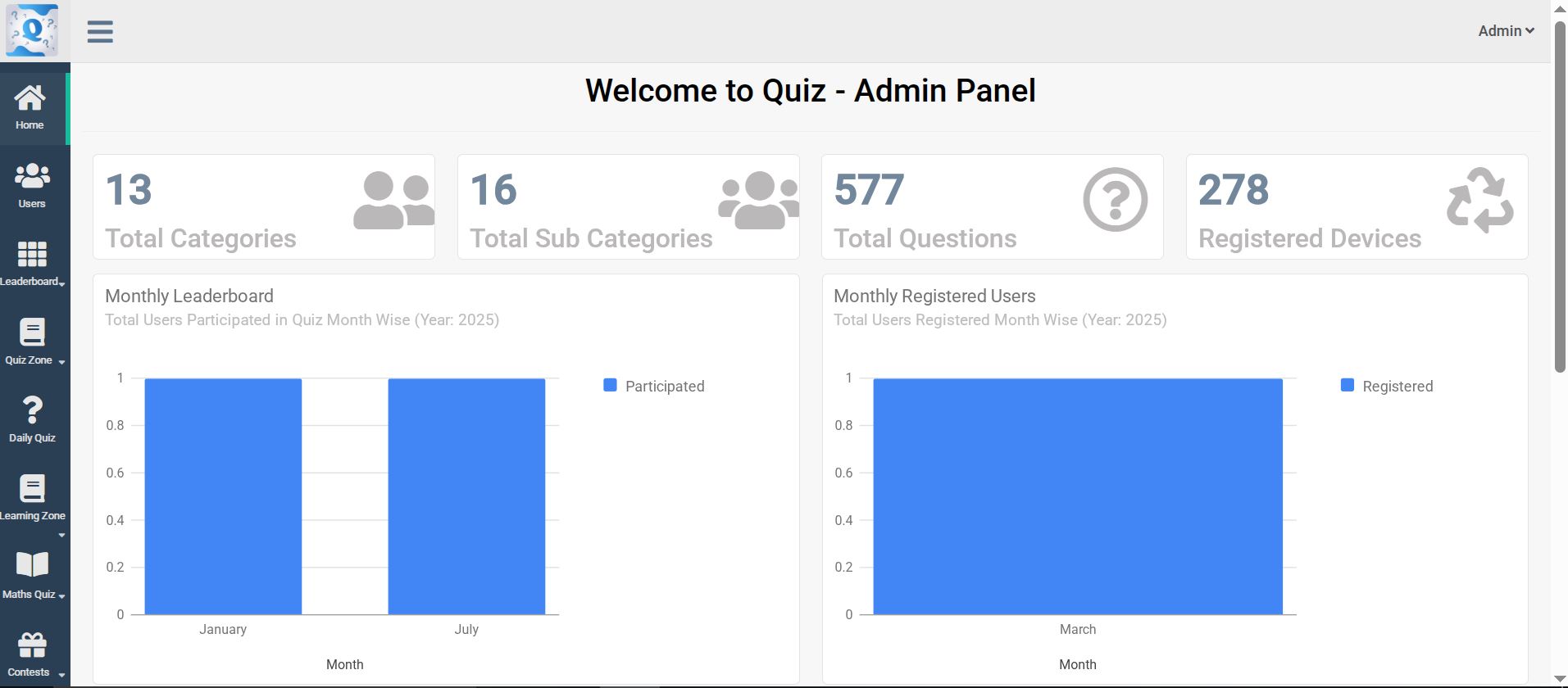Quizflex Admin Panel.